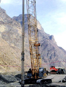 振沖器是振沖法施工中的特制機具。它產(chǎn)生水平向振動力振擠填料及周圍土體,而達到提高地基承載能力、減少沉降量、增加地基穩(wěn)定性、提高抗地震液化能力。 振沖法施工時除原地沖器外,尚需行走式起吊裝置,泵送輸水系統(tǒng),控制操作臺等。如工程單位缺乏起重機,本廠還供應(yīng)振沖器施工樁架,樁架有單邊滾管立柱式、液壓步履式、簡易履帶式等。